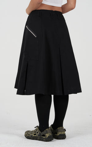 MAKEWAVES Cargo Skirt is made with high density textured cotton. Pleats are designed to make you look good from all directions. Comes with belt loops that can go really well with Traject’s HELIX Belt. Finished off with contrast zippers on the cargo pockets.