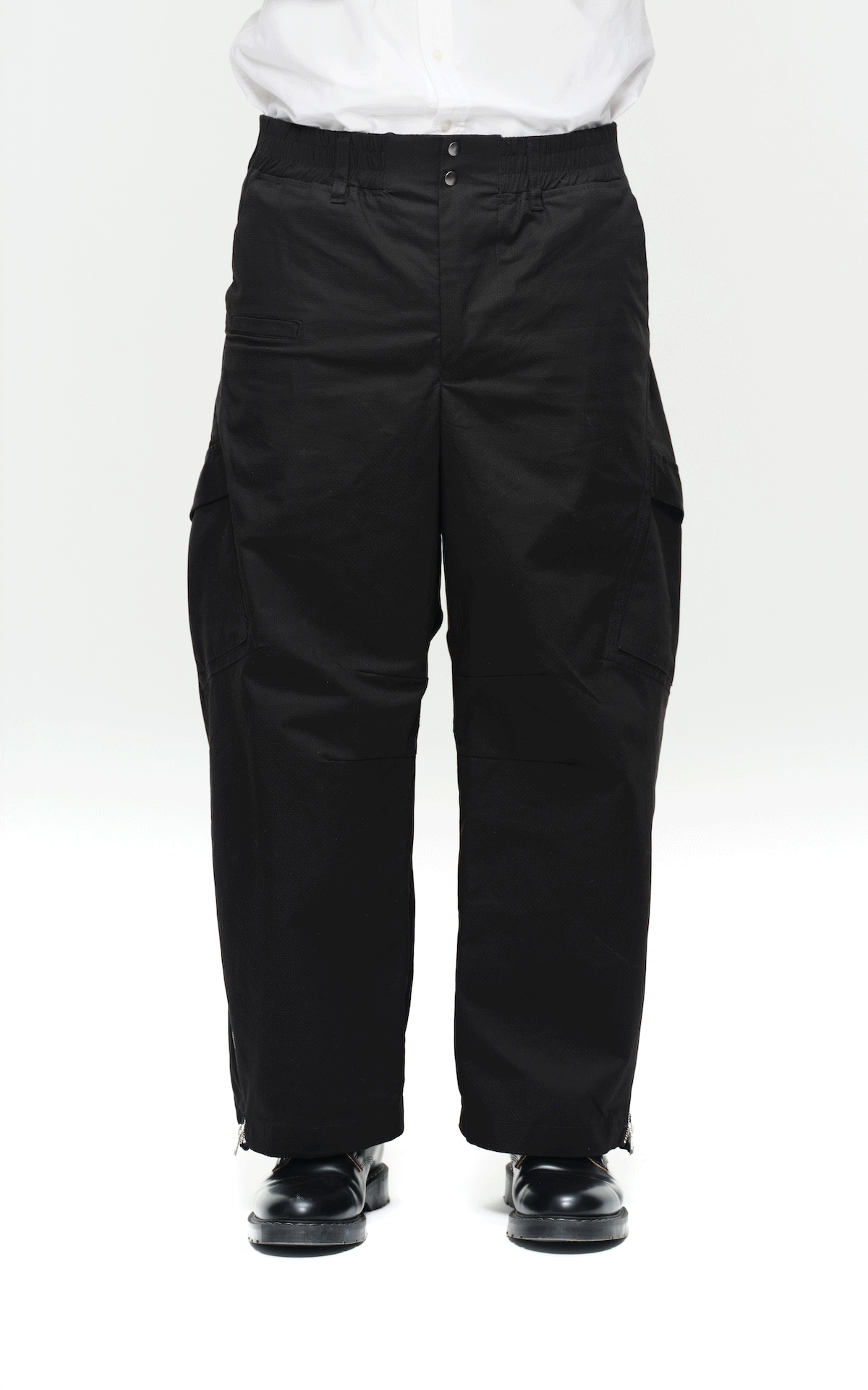 The “THUNDEROUS” Pants are crafted from high-density cotton for a durable yet comfortable fit. A contrast-colored thread runs along one side of the seam, adding a distinctive touch. Designed for utility, the pants feature two front pockets, two back pockets, two knee-side pockets, and a dedicated phone pocket on the right. The signature thunder-shaped side seams create a bold silhouette that stands out from every angle.